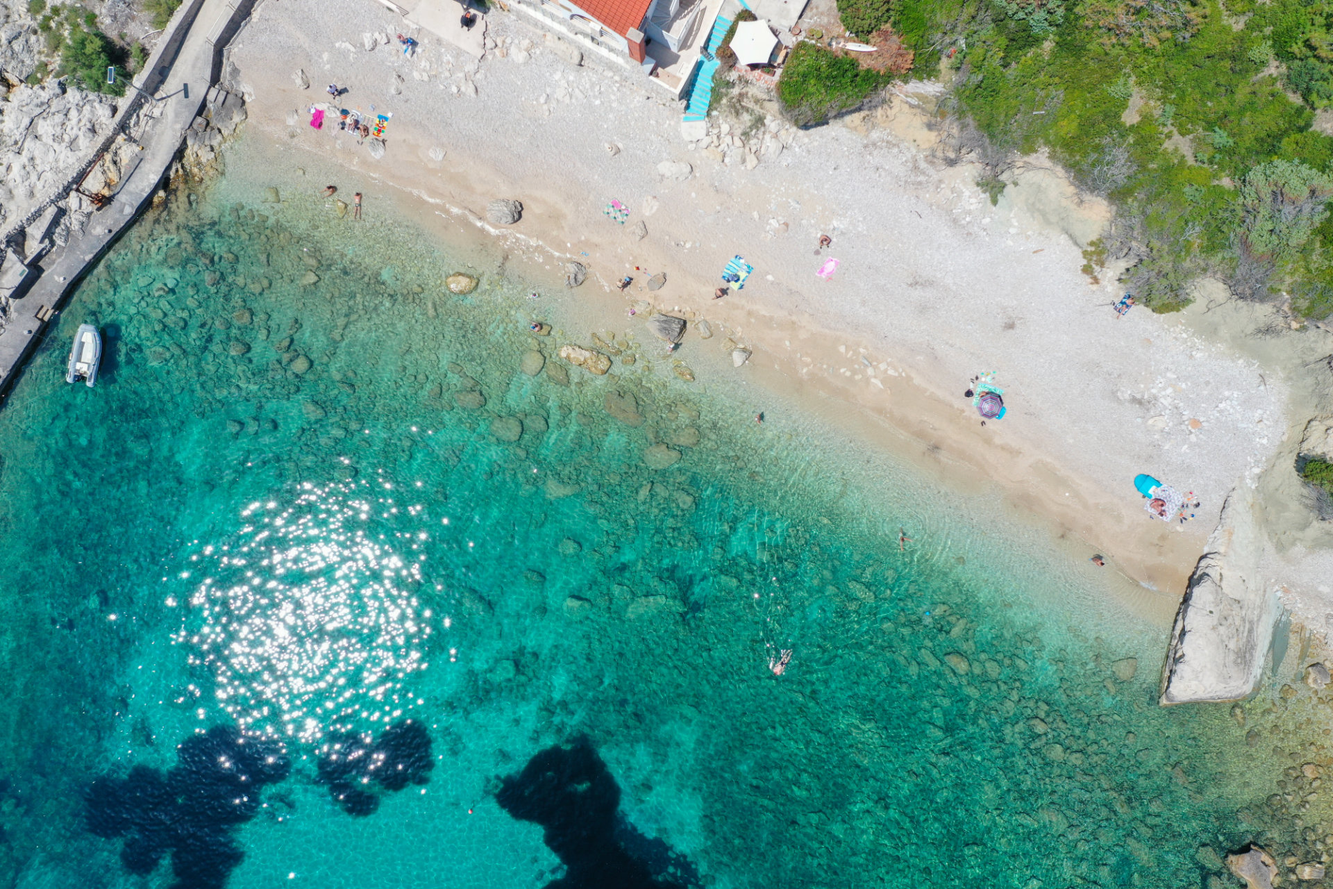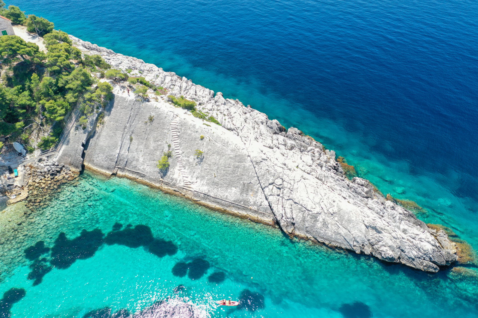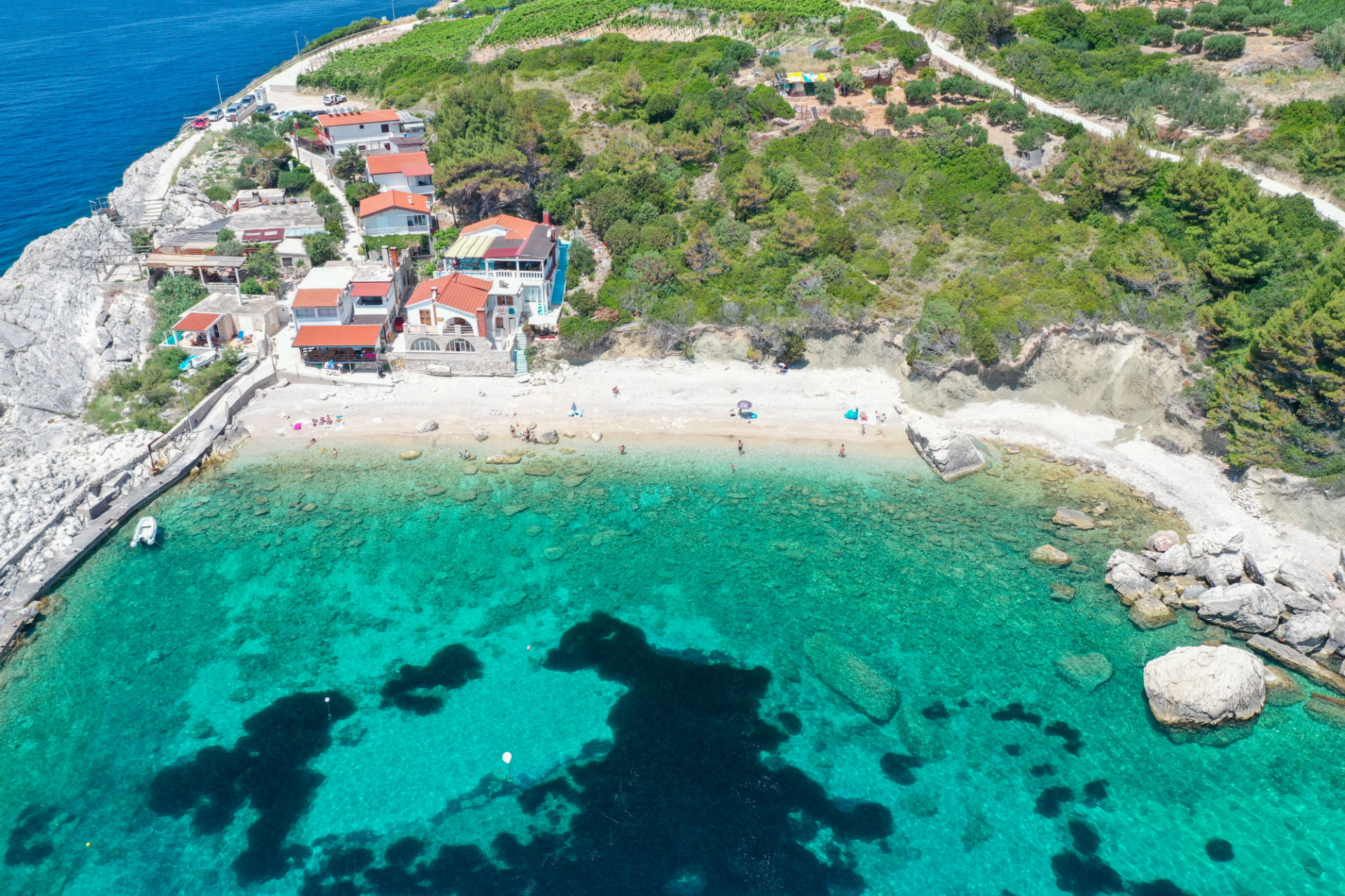 On the rocky cliffs of Hvar’s southern side lies Zaraće, a village 6 km from the city of Hvar. At the base of this picturesque village, two deep coves with pebble beaches nestle against the rugged cliffs: Velo Zaraće faces east, and Malo Zaraće west. These beaches, enclosed by stunning rocky cliffs, are not only scenic but also popular with swimmers and underwater enthusiasts, thanks to the area’s rich marine landscapes. The village offers delightful accommodation and has several inviting restaurants.